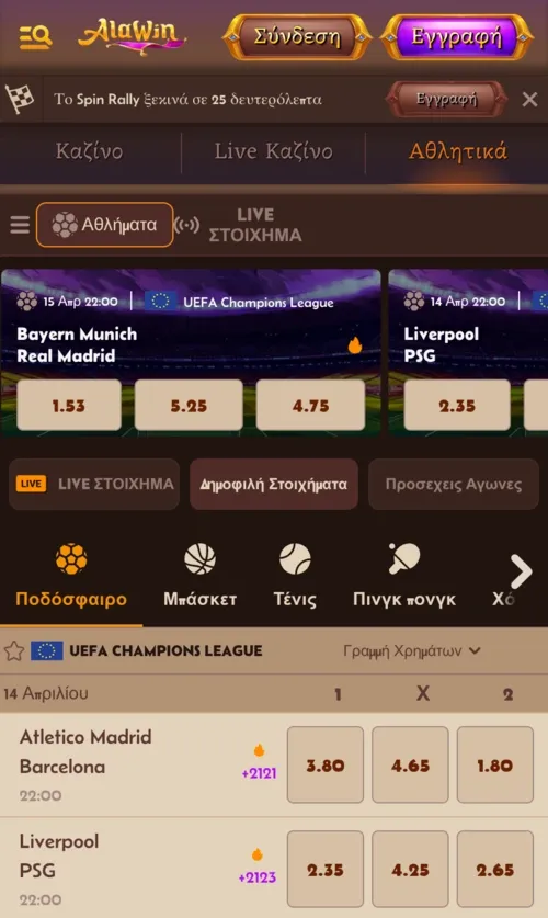 Στοιχηματίστε σε Αθλήματα στο Alawin